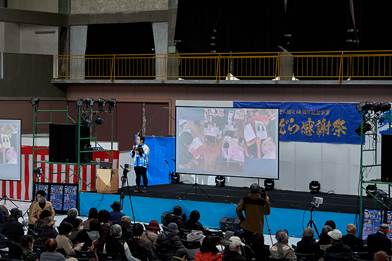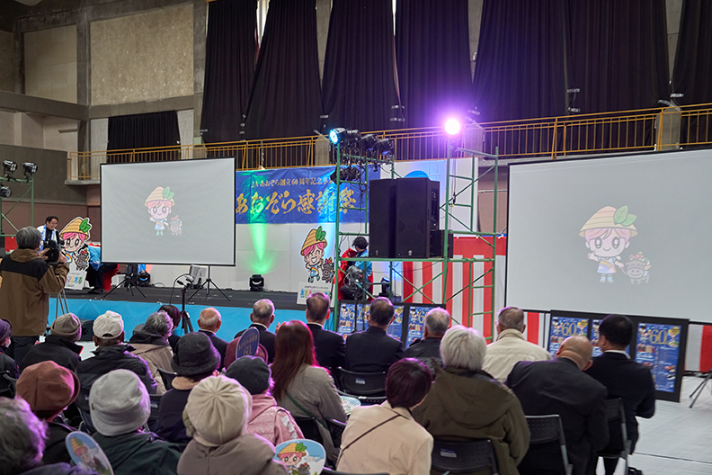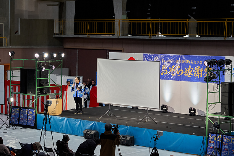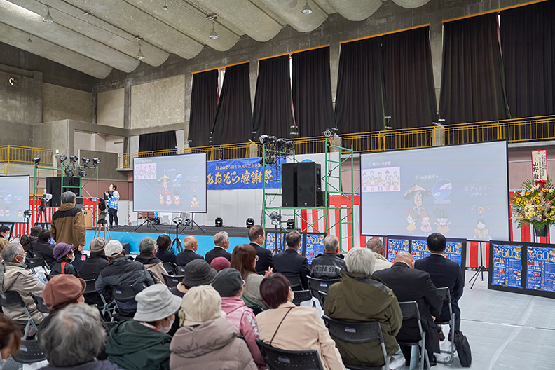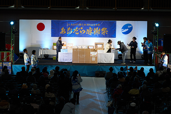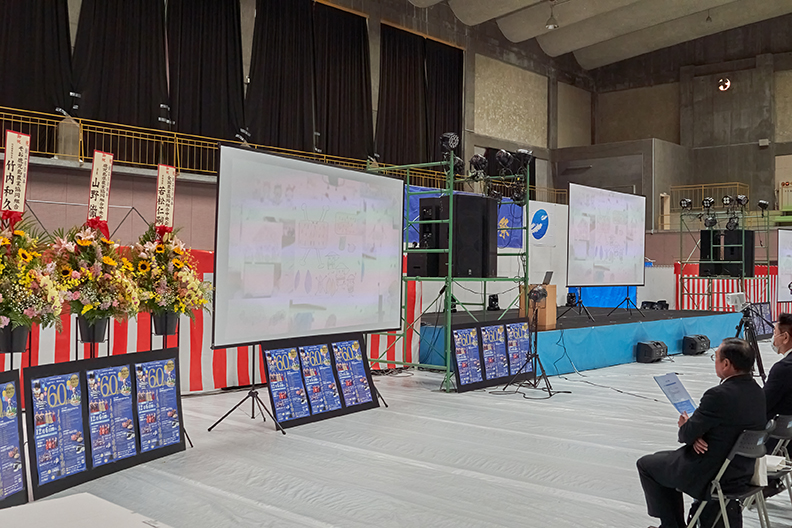 和太鼓の熱気が残る中、会場のスクリーンにはJAあおぞらの60周年を記念した特別VTRが上映されました。