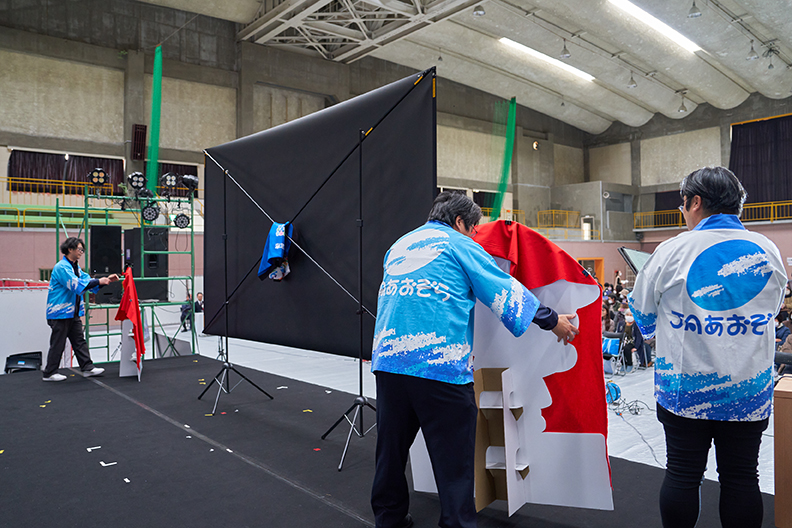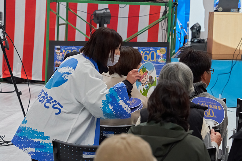 キャラクター発表の余韻に包まれる中、会場ではお祭りには欠かせない「特製うちわ」が記念品として配られました。