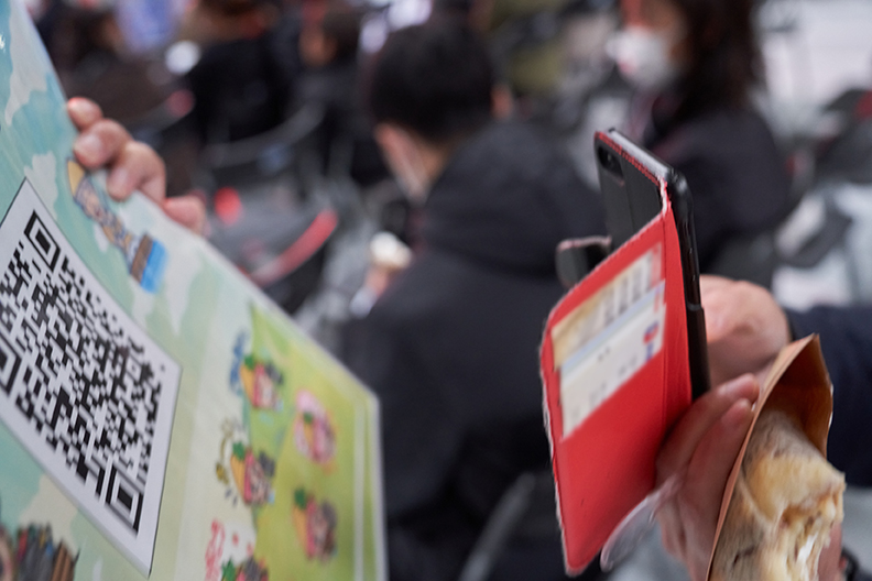 会場の大型スクリーンにQRコードが映し出されると、来場者の皆様が一斉にスマートフォンを掲げる光景が見られました。