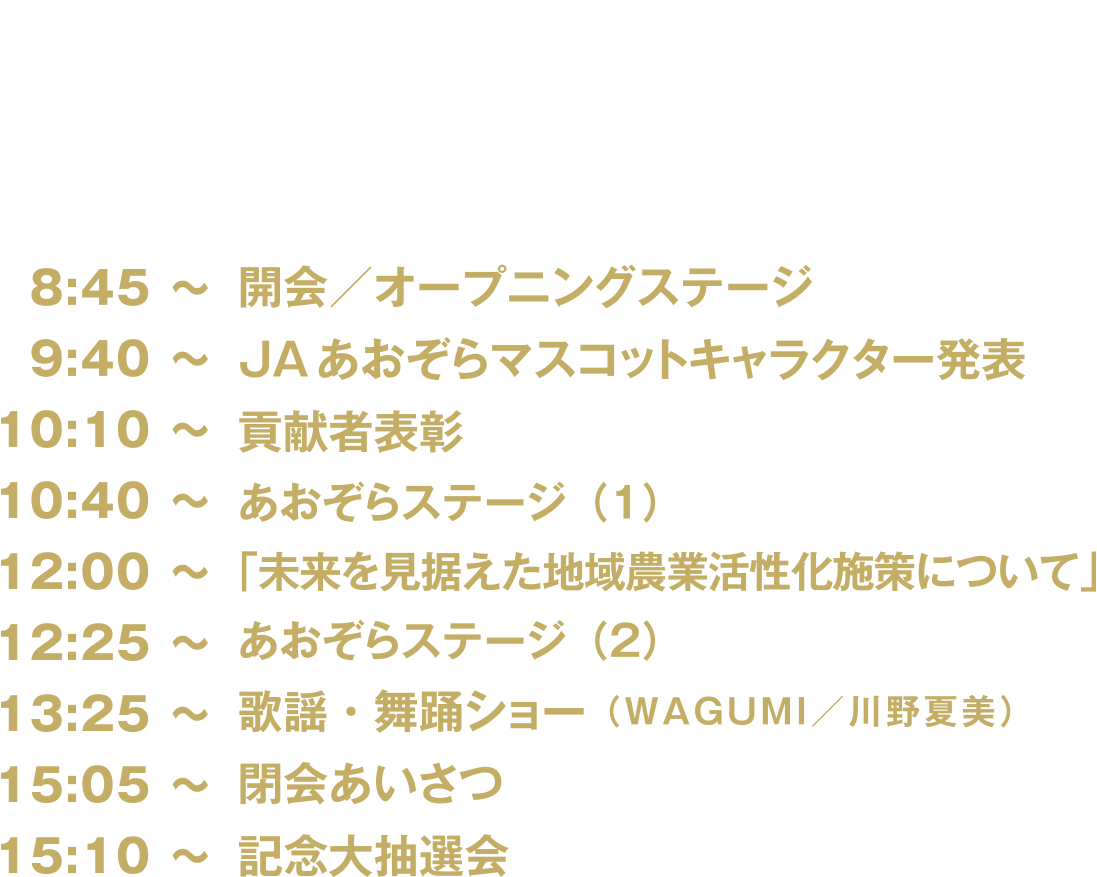 「あおぞら感謝祭」は、JAあおぞら(あおぞら農業協同組合)が、日頃から地域の農業と組合員活動を支えてくださる皆様への感謝と、地域の「食」の豊かさと、農業の素晴らしさを改めて体感できる、すべての方に向けた収穫と感謝のお祭りです。今年は創立60周年記念のお祭りになります。初めての方も、ぜひお気軽にお越しください!